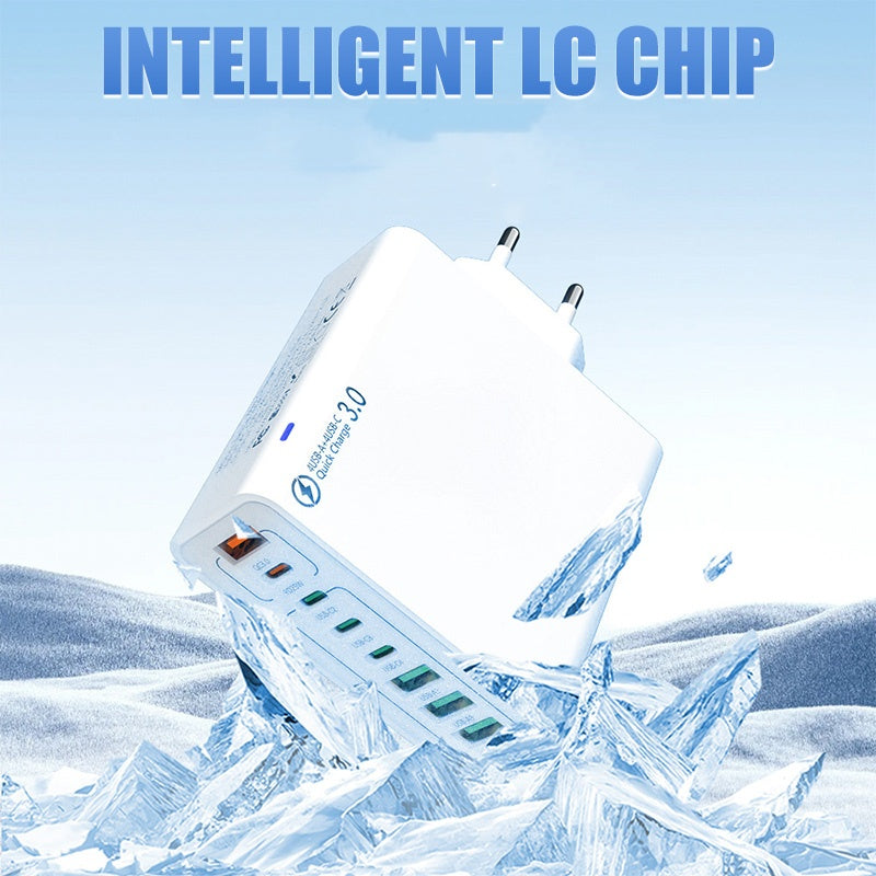 CHARGE 8 DEVICES SIMULTANEOUSLY: Featuring 8 USB ports, this charger is ideal for families, offices, or tech enthusiasts with multiple gadgets. Charge phones, tablets, smartwatches, Bluetooth earphones, and more—all at once, with no need for multiple outlets or adapters.