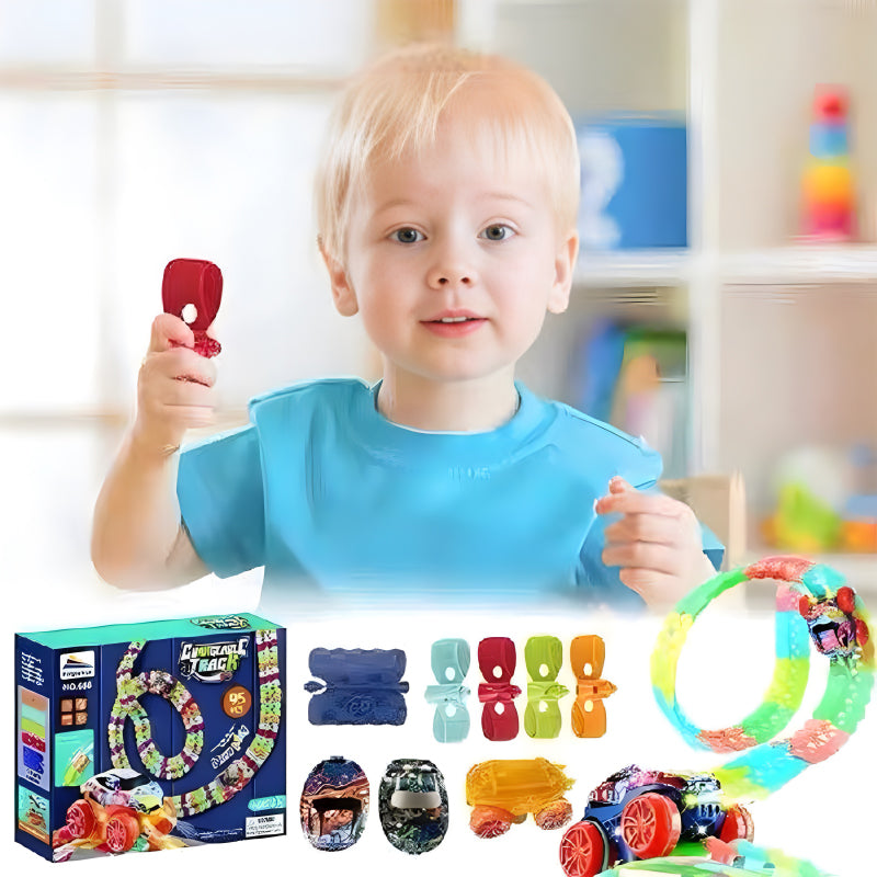MAGIC THAT GLOWS IN THE DARK- This unique railway toy comes to life when the lights go out. The specially designed suction cups and tracks glow in the dark, creating a captivating visual display that will amaze children. Watch them explore the magic of phosphorescent play while learning about light and luminescence.