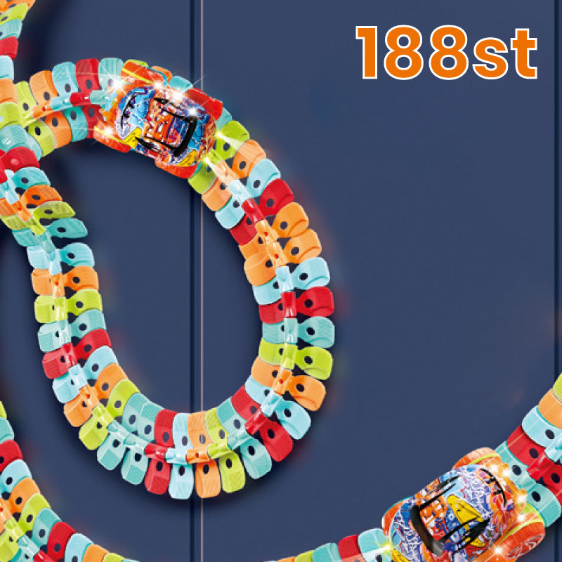 VERSATILE TRACK SYSTEM - The toy includes a variety of track pieces that can be easily assembled in different configurations. Children can create their own customised track systems, experiment with design and discover the principles of engineering and problem solving as they build tracks that twist, turn and loop.