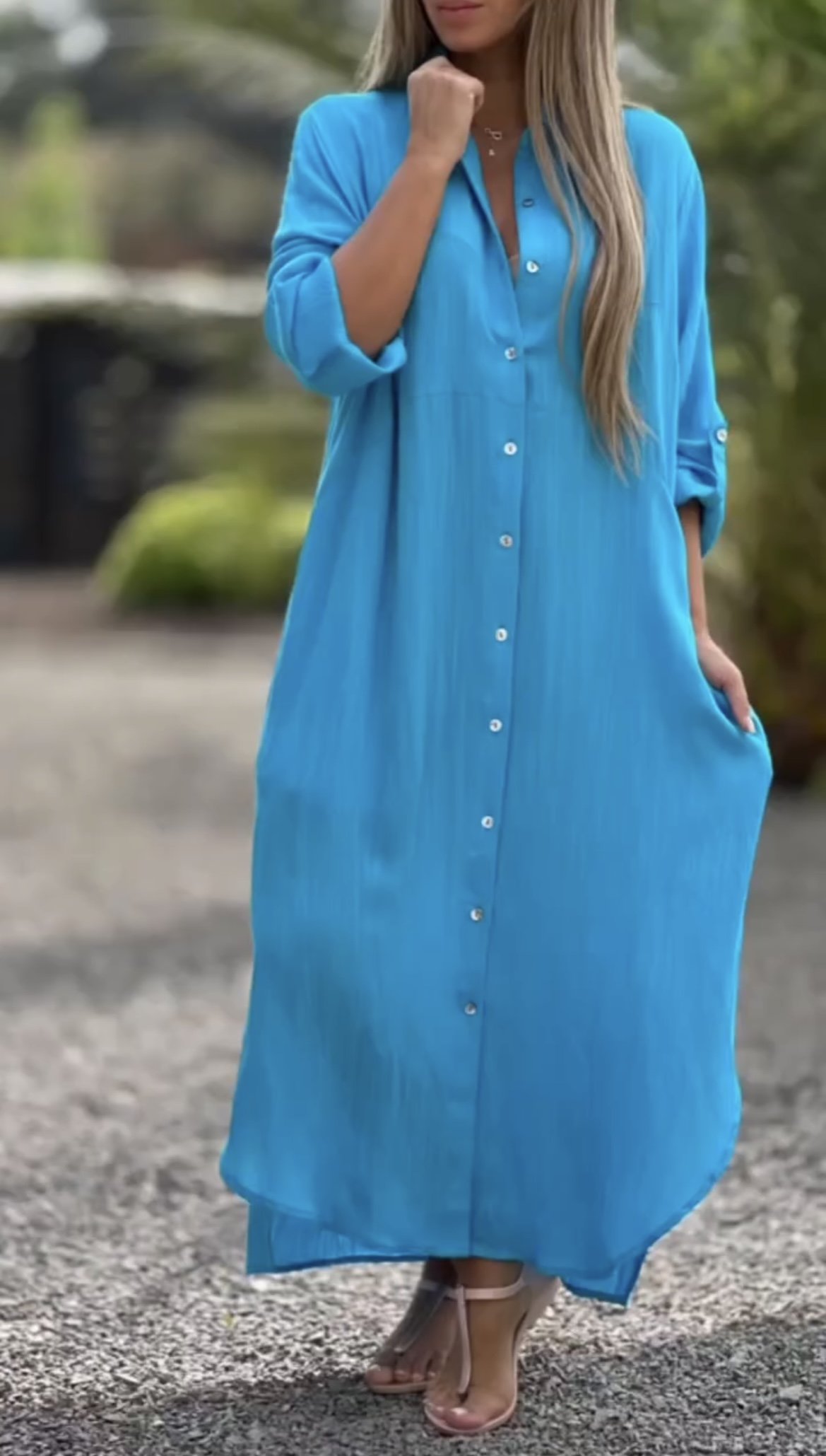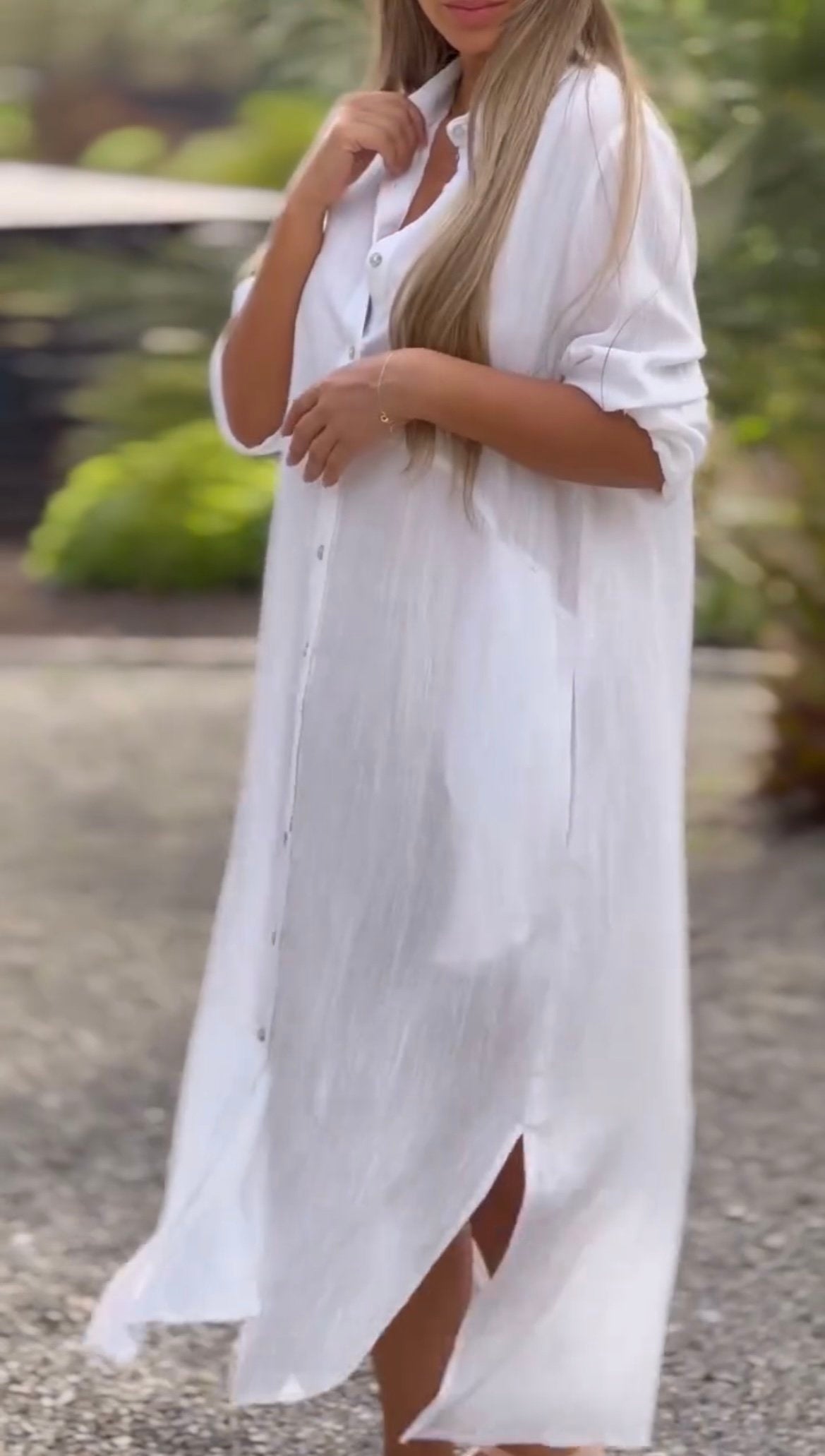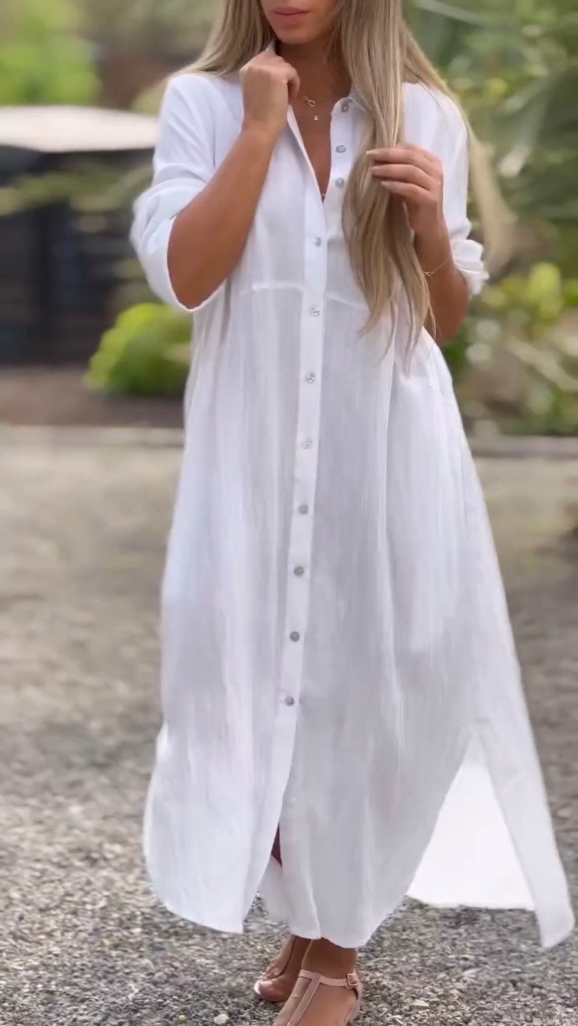 Women's Casual Solid Color Button Front Linen Shirt Dress