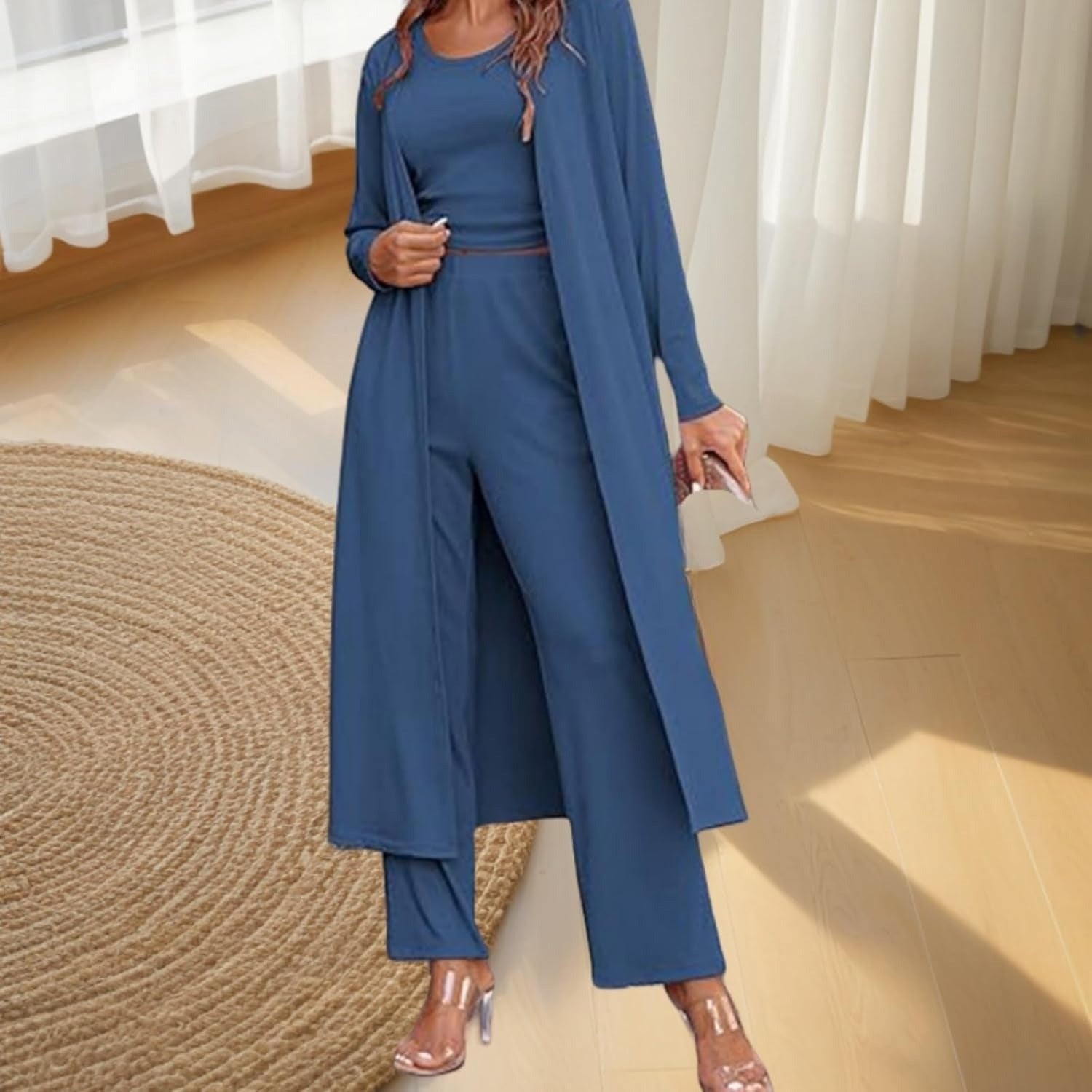 STYLISH 3-PIECE SET: This chic 3-piece set includes a sleeveless vest, a cardigan, and versatile pants. Tailor and adjust the fit to your preference for a flattering look at any time.
