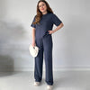 Package Includes: 1* Casual Crew Neck Top & Drawstring Pants Set