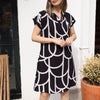 CHIC & STYLISH: The combination of solid black and irregular geometric patterns creates a chic and fashionable look, making this dress a versatile and trendy addition to your wardrobe.