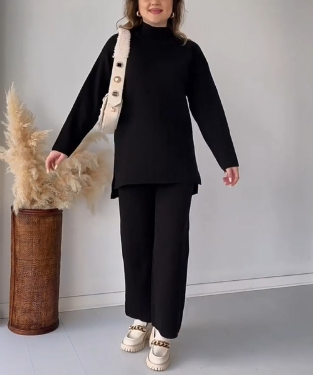 Featuring a crewneck knit crop top and high waist loose knit pants for a trendy and chic look, made with a super-soft knit fabric, our Classy Elastic Knit Lounge Set is the perfect choice for a cozy instant outfit.