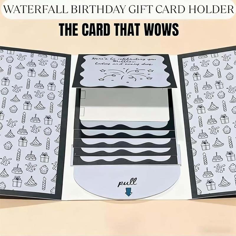 WATERFALL DESIGN – This gift card booklet features a cascading waterfall design that creates a dynamic visual effect when opened. Each layer reveals a new section, adding depth and a sense of surprise to the presentation. Ideal for holiday gifting, it elevates a simple gift card into a thoughtful and memorable gesture that captures seasonal spirit.