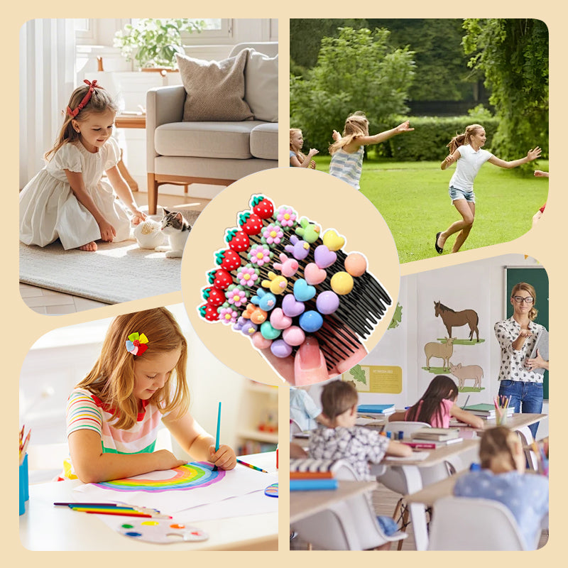 CUTE CARTOON STYLE - Designed with playful cartoon patterns or animal shapes like strawberries and rabbits, this hair clip is colorful and charming — making it look more like a fun toy than just a hair accessory, encouraging kids to wear it happily.