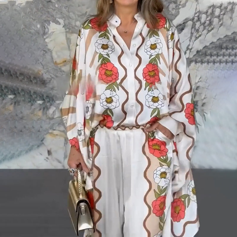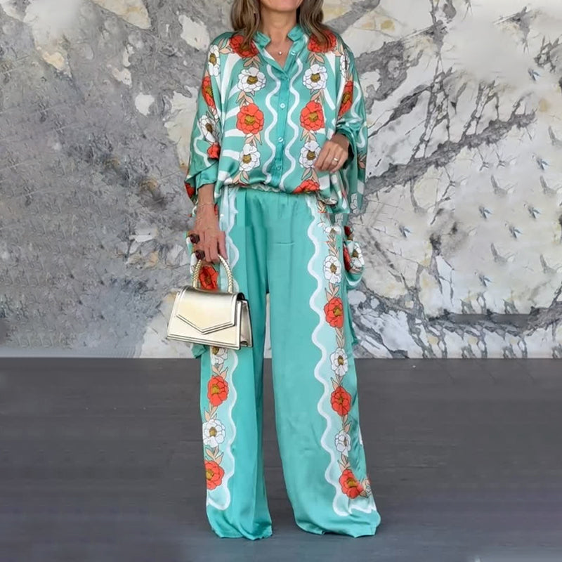 Women's Stylish Floral Print Top & Pants Two-Piece Set