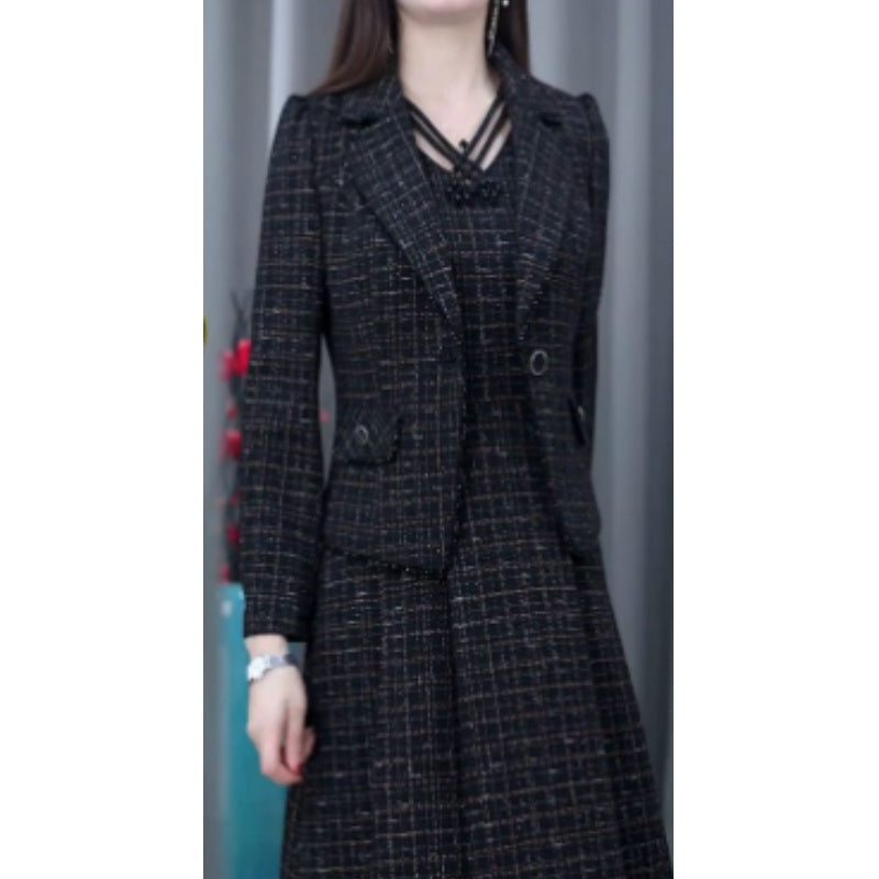 PLAID PATTERN: Stand out with the striking plaid pattern of this blazer and dress set. This fashionable design brings a sophisticated flair, making it ideal for both casual outings and upscale events.