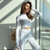 UNIQUE TOP WITH THUMB HOLES: The fitted crop top features innovative thumb holes at the end of the long sleeves, providing a unique and practical design element. This feature not only keeps the sleeves in place but also adds a touch of modern style and comfort to the top.