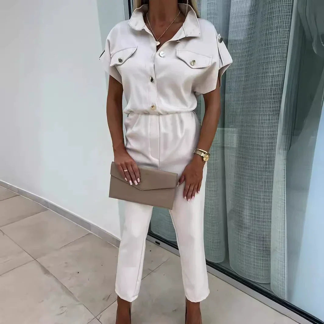 Fashionable Solid Color Jumpsuit with Pockets