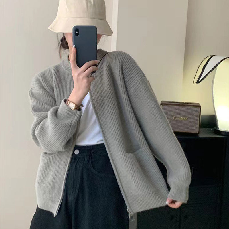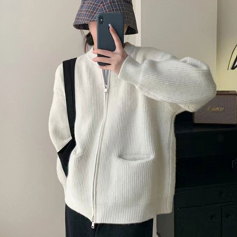 Package Include: 1 * Women's Knitted Round Neck Double Zip Coat
