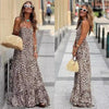 Women’s Sexy Leopard Print Backless Halter Long Dress