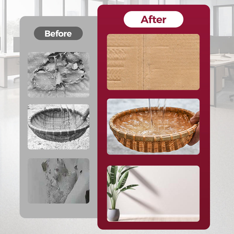 DENSE FILM FORMATION WITH STRONG HYDROPHOBIC PROPERTIES – The coating penetrates minor cracks in the substrate, blocking water seepage and forming a powerful hydrophobic barrier that prevents secondary leakage.