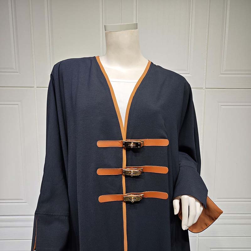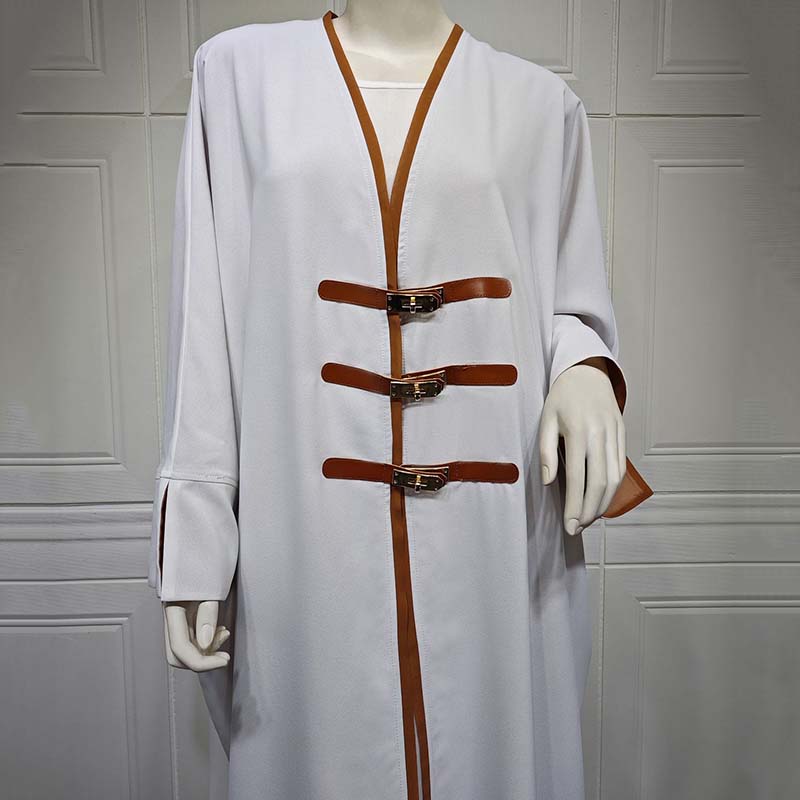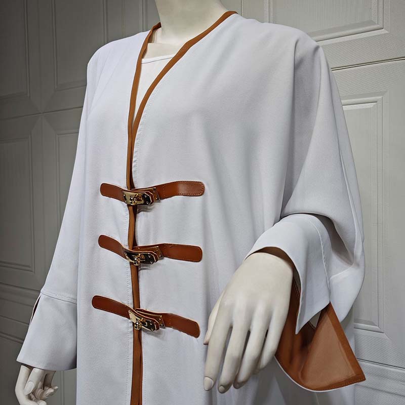 STYLISH BUCKLE ACCENTS: Featuring three stylish PU leather buckles on the front, this Jalabiya stands out with its unique and fashionable design elements. The buckles add a modern twist to the traditional attire.