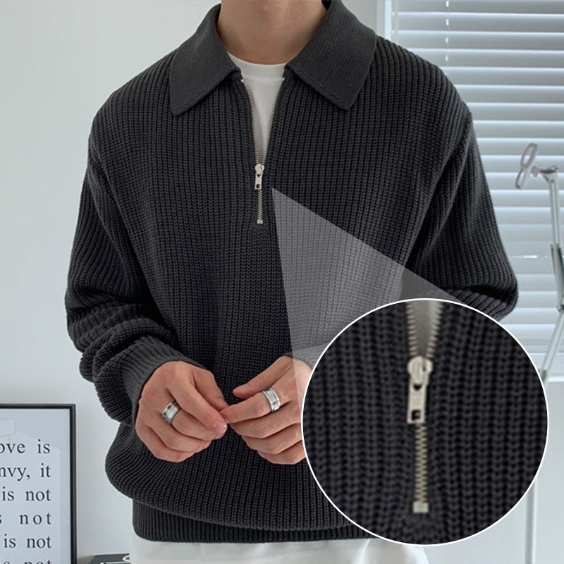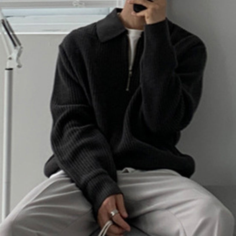 Men's Casual Solid Color Loose Fit Half-Zip Sweater