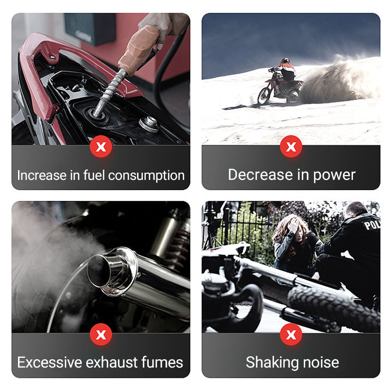 VIBRATION DAMPING EFFECT: Smooths engine operation by stabilizing combustion cycles. Riders experience noticeably quieter performance with reduced handlebar vibration during acceleration and cruising.
