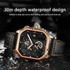 - 30M Waterproof Grade: it is tolerable for sweating and accidental rain or water splashes and can also be wiped off with a small amount of cold water. The leather strap is comfortable to wear. Not only gook looking, but also comfortable on the skin.