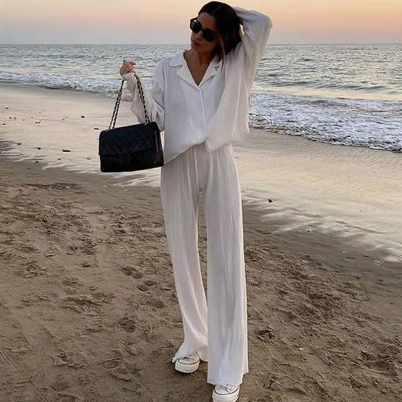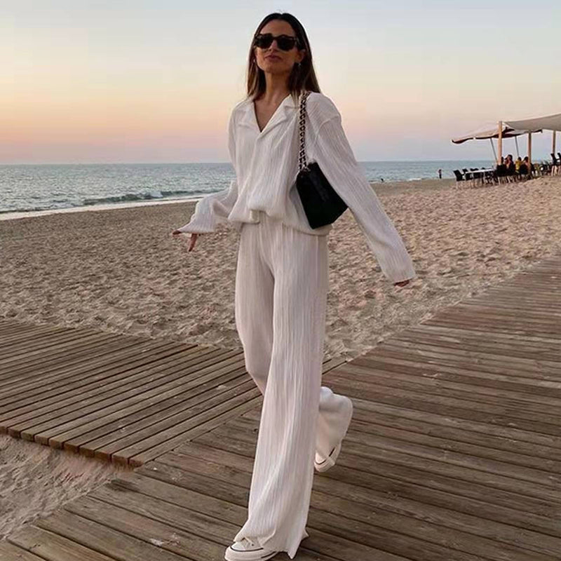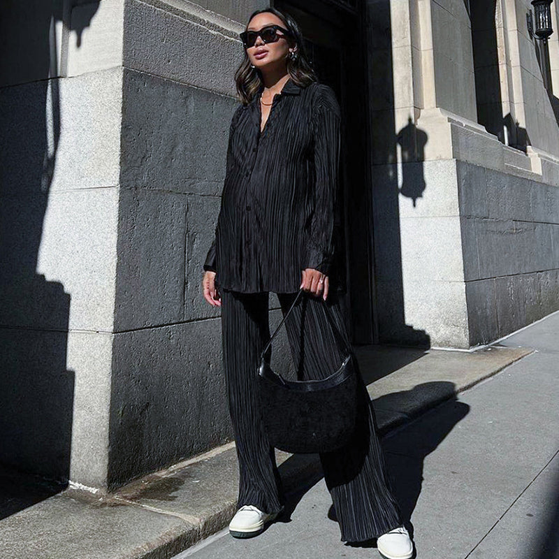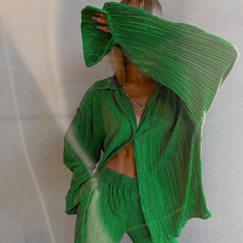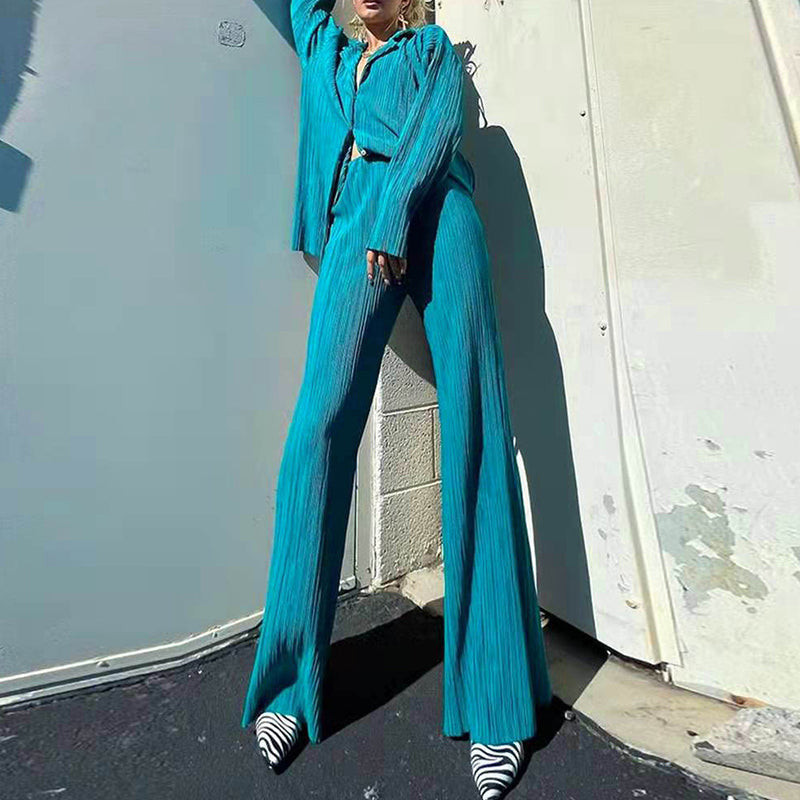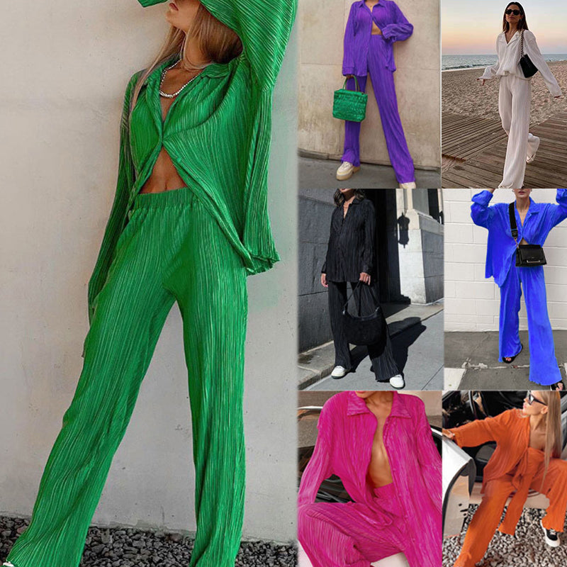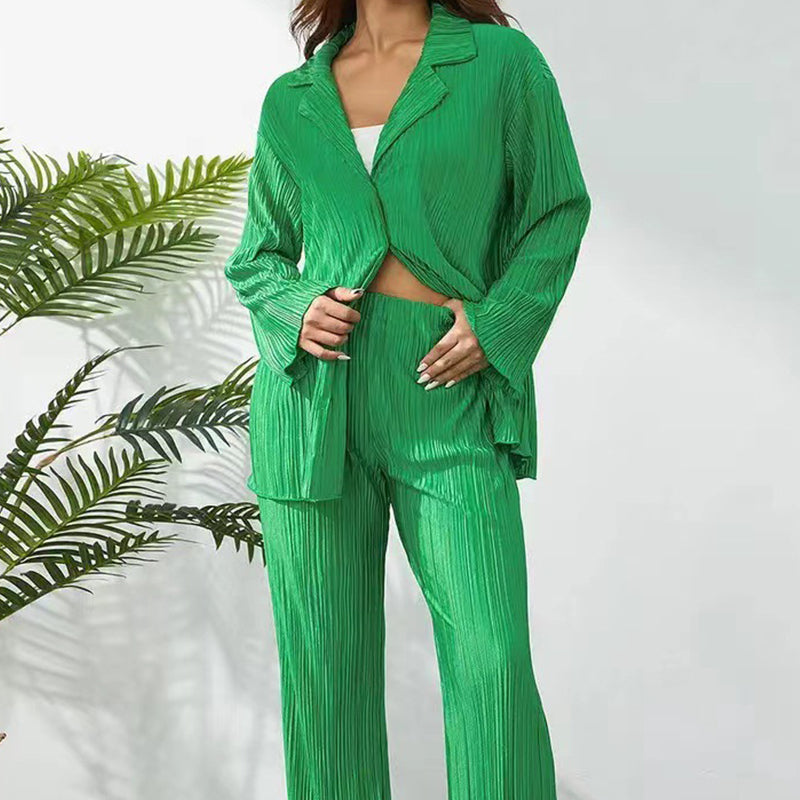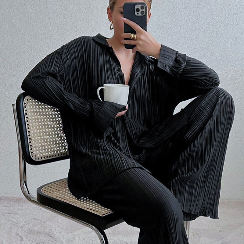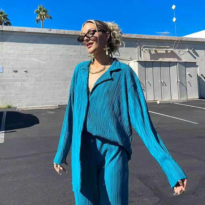 PLEATED DESIGN: The pleated design of both the shirt and pants adds texture and elegance to your outfit. It creates a stylish, timeless look that’s perfect for any season.
