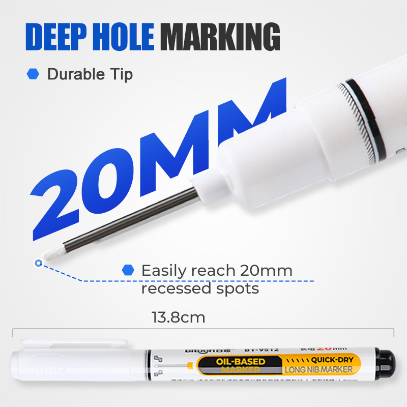 20MM EXTRA-LONG TIP – REACHES WHERE OTHERS CAN’T: Deep holes? Tight gaps? No problem. The precision-engineered 20mm nozzle reaches spaces standard markers can’t. Get accurate marks inside recesses, machinery, cabinetry, or any hard-to-reach spot.