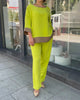Package includes: 1 * set of soft round-neck top and straight-leg trousers