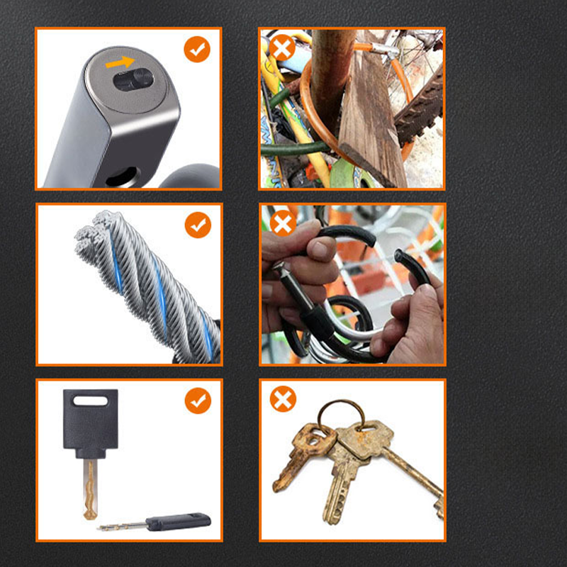HIGH-STRENGTH RESILIENT STEEL CABLE - Made from multiple strands of reinforced steel wire twisted together, offering exceptional tensile strength. The thickened steel cable resists cutting, sawing, and pulling, providing reliable theft protection.