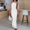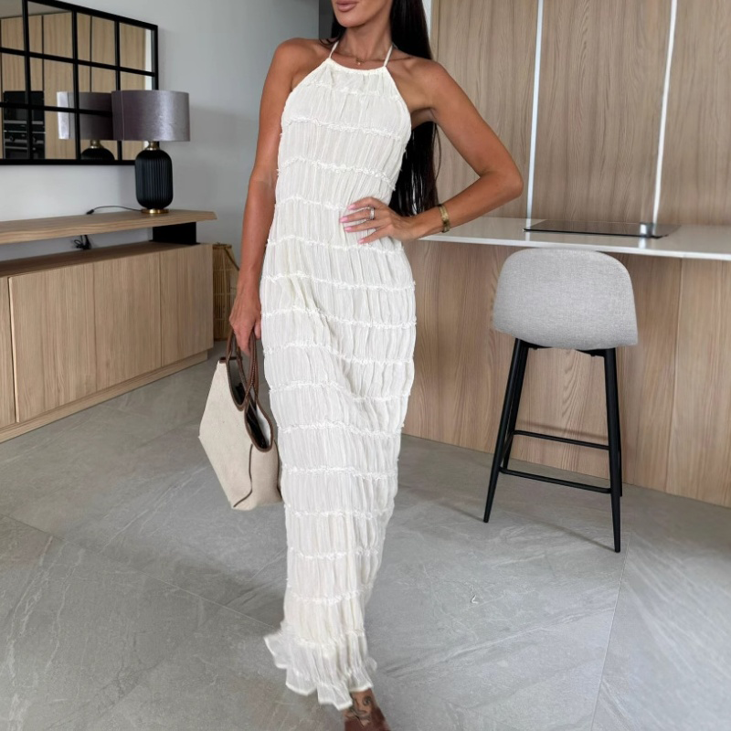 Sexy Pleated Texture Halter Neck Backless Maxi Dress