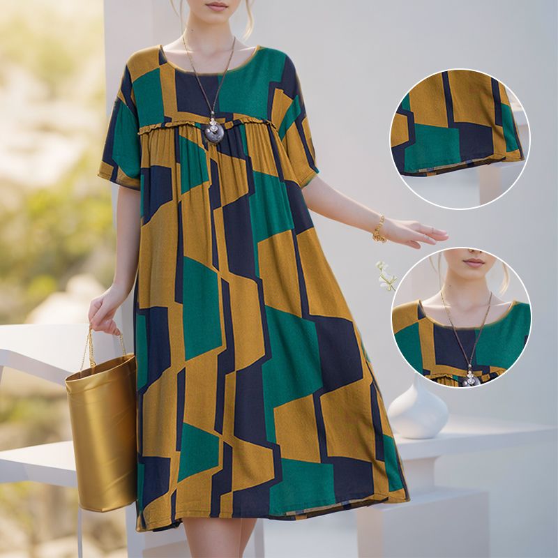 Specially designed for moms who value both comfort and style. This dress combines an on-trend oversized silhouette, eye-catching prints, and convenient pockets, making it a perfect choice for different occasions and activities.
