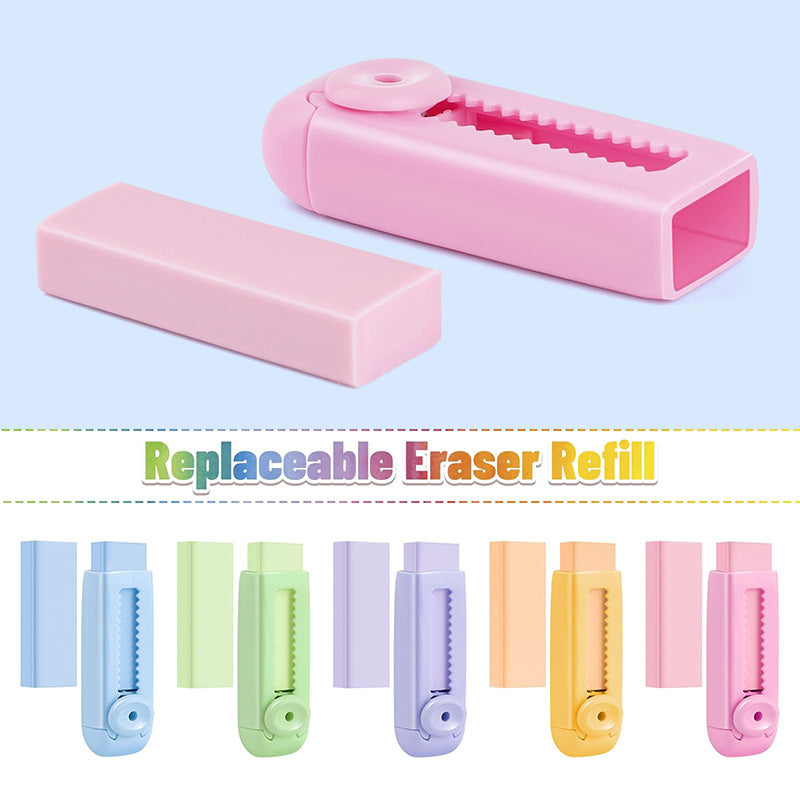 REPLACEABLE CORE: Equipped with a replaceable eraser core design, when the eraser is used up, there's no need to replace the entire item; simply swap out the inner core.