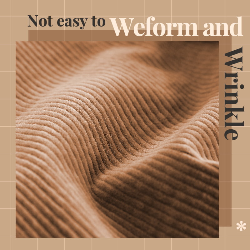 The high-quality corduroy fabric feels delicate and smooth, which is skin-friendly. It has a certain degree of elasticity and is not easy to deform and wrinkle.