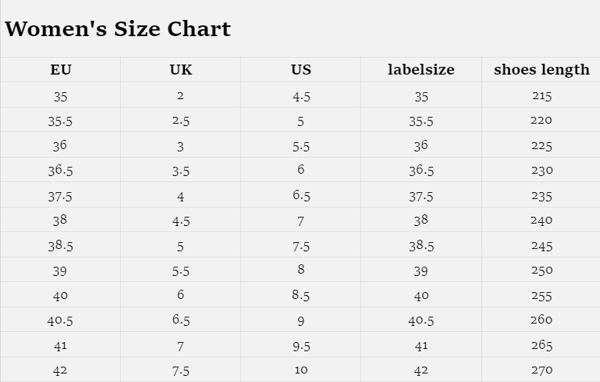 Note: If your feet are too wide, please increase one size, if your feet are too narrow, please order according to the normal size.