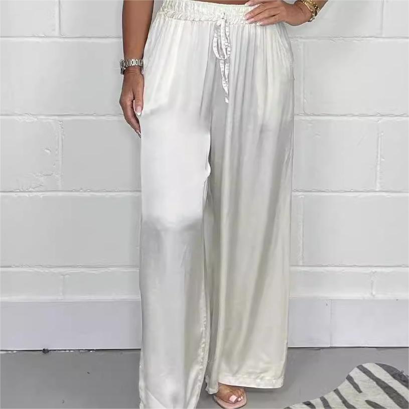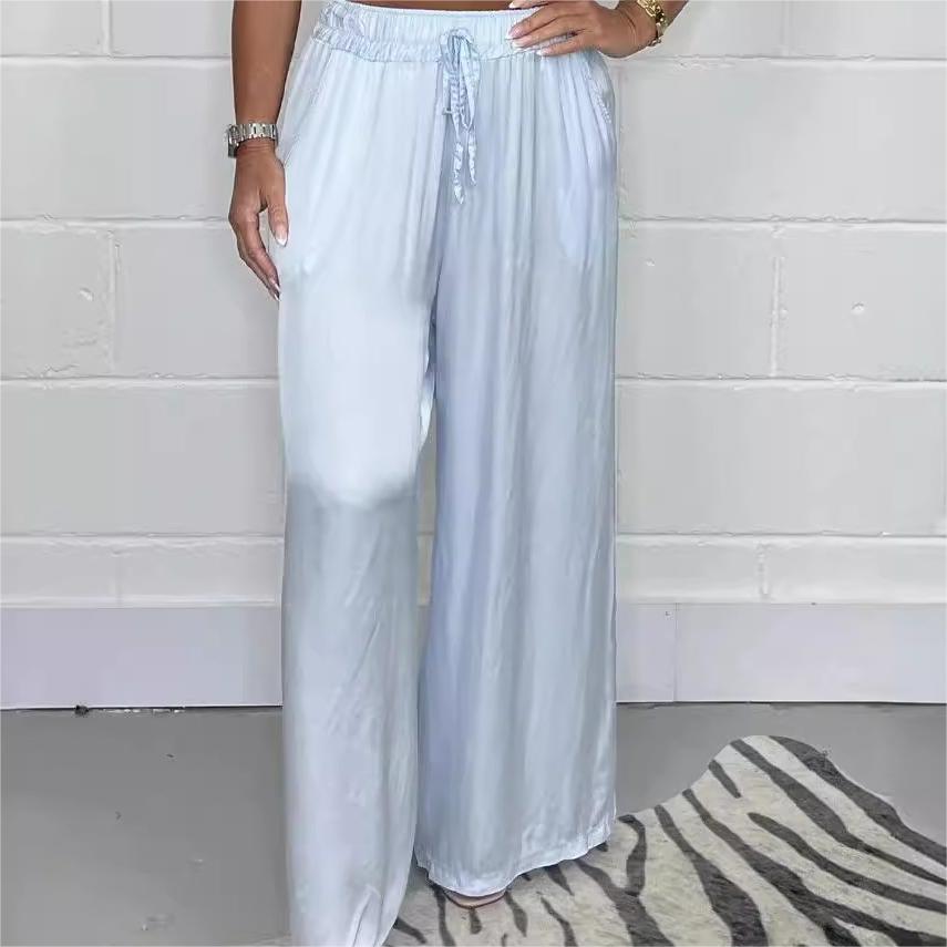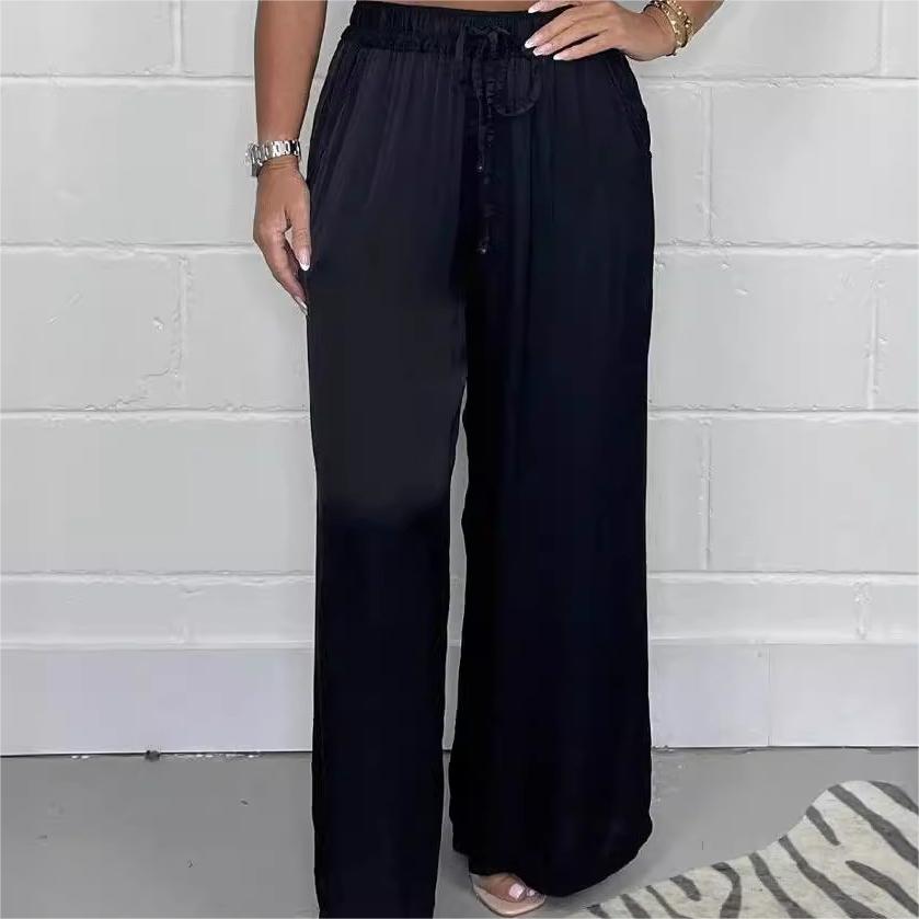 Type: Stylish Drawstring Waist Straight Leg Smooth Loose Trousers with Pockets