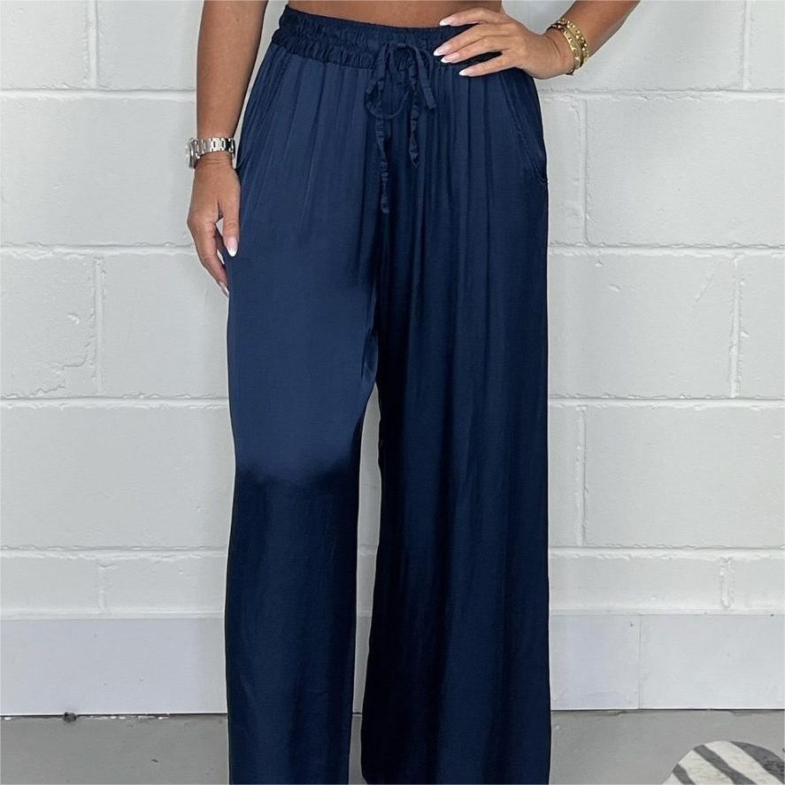 Elevate your fashion game with our Stylish Drawstring Waist Straight Leg Smooth Loose Trousers. These trousers combine comfort and style with their straight leg silhouette, smooth fabric, and convenient pockets. The drawstring waist adds a trendy touch and allows for a perfect fit. Step out in confidence and style with these versatile trousers.