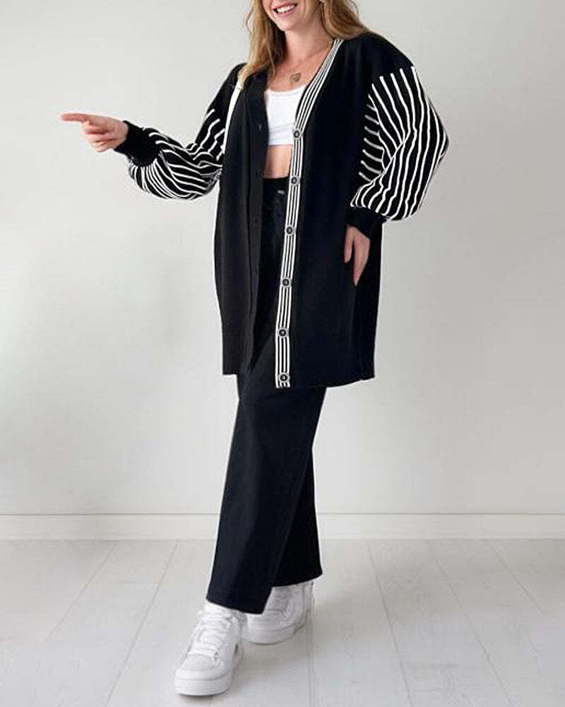 🌷Limited Time 50% OFF💞Balloon Sleeve Striped Knitwear Cardigan & Pants Two-piece Set