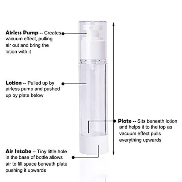 - Airless Vacuum Dispensing-- Airless pump technology ensures you'll keep your products fresh and free from oxidation by preventing them from excessive exposure to air, thus increase product shelf life up to 15% more & NO Odour.