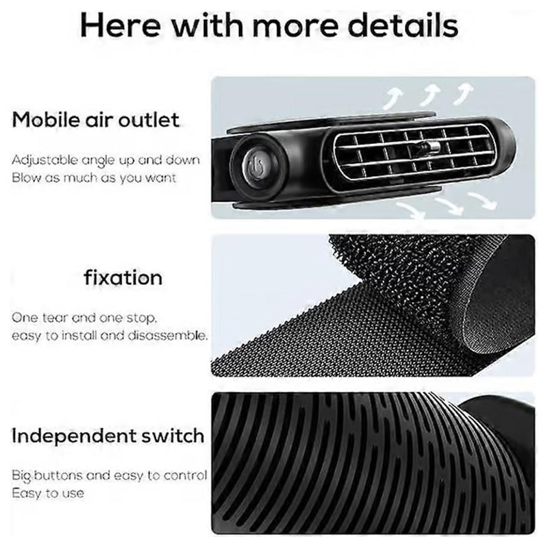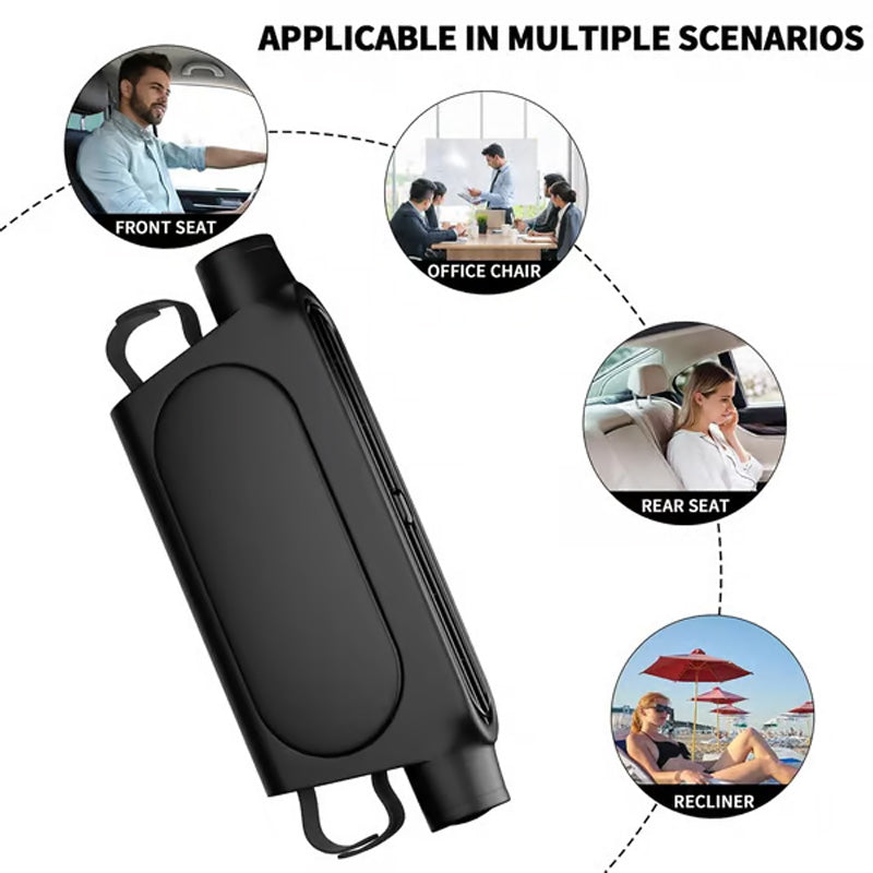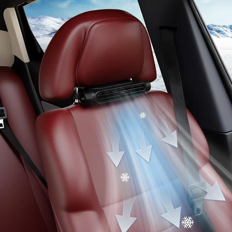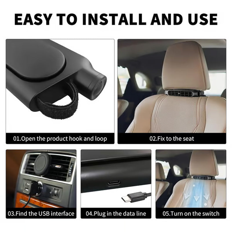 EASY INSTALLATION WITH ADJUSTABLE STRAPS – Attach the fan to the front seat easily using adjustable straps on the headrest poles, providing immediate comfort and relief during long drives.