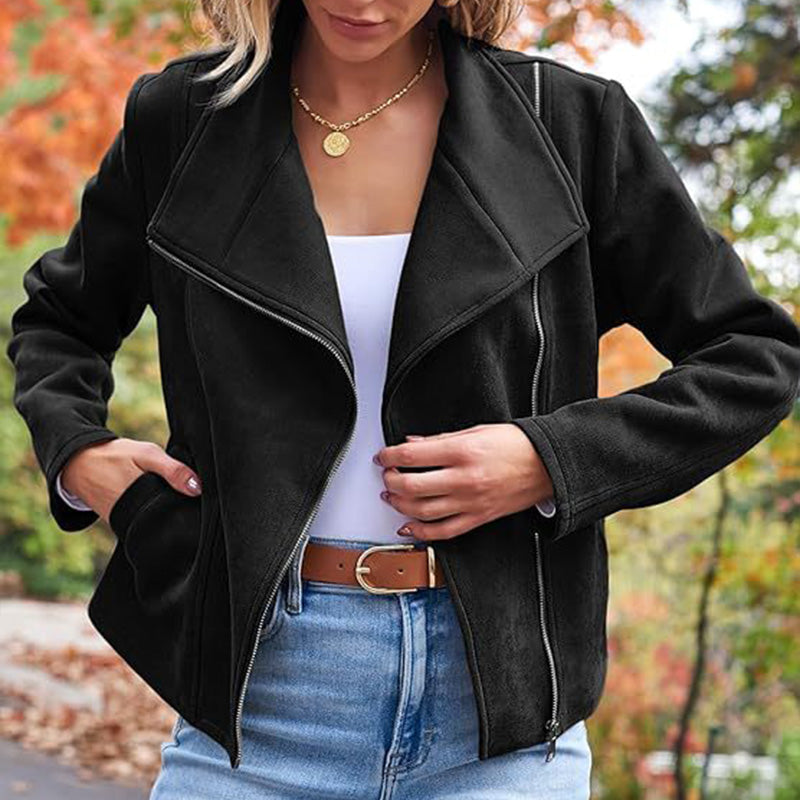 SHORT CROPPED AND ZIP UP DESIGN: This trendy cropped jacket features a sleek zip-up front, perfect for layering. The short cut enhances your silhouette while adding an edgy flair, making it a must-have for any fashionista’s wardrobe.