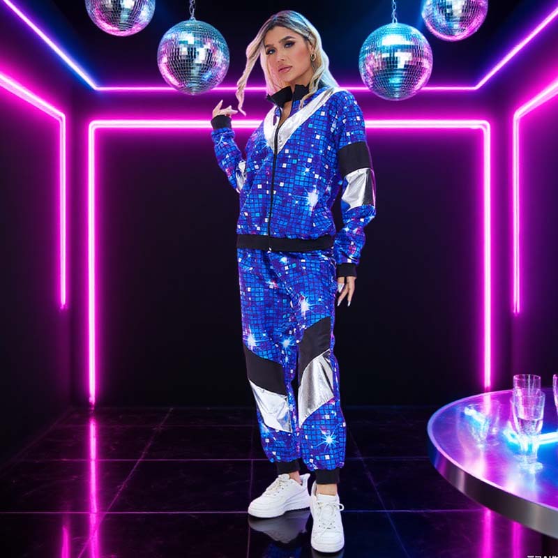 AUTHENTIC 80S STYLE: Faithfully recreates the vibrant disco and hip-hop fashion of the 1980s with bold color-blocking, eye-catching stripes, and shimmering mosaic patterns. This retro aesthetic instantly transports you back to a dynamic era of music and dance.