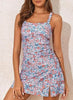 Tankini Swimsuits Swimdress: Flattering square neckline with pleated design for added style. Wide adjustable shoulder straps and removable padded cups excellent support for the bust