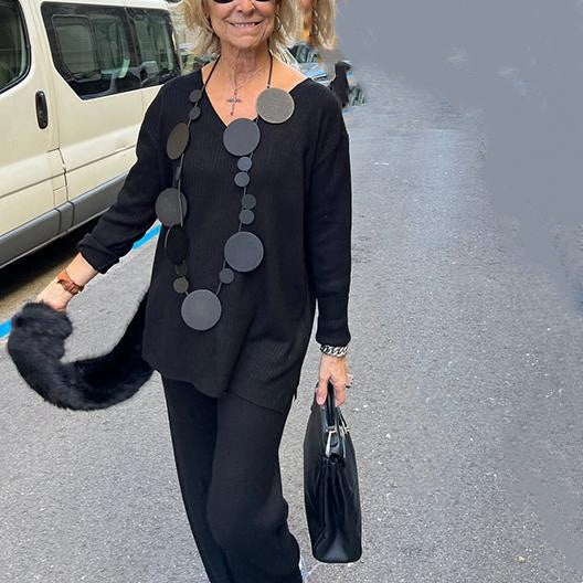 COMPLETE SET: This 2-piece set includes a chic V-neck top and elegant wide-leg pants, offering a coordinated and fashionable outfit. This set provides a complete and effortlessly stylish look.