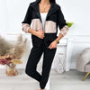 STRETCH JOGGER PANTS – The matching jogger pants feature an elastic waistband and cuffs, offering unrestricted movement and a flattering fit. Whether lounging at home or stepping out, the sleek striped design adds visual length and sporty sophistication to your silhouette.