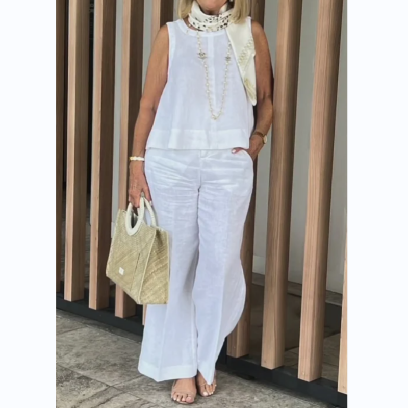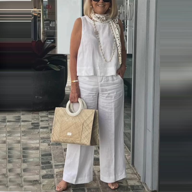 Women's Simple Breathable Suit - Round-Neck Sleeveless Top & Wide-Leg Pants