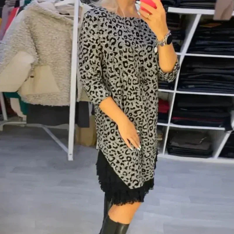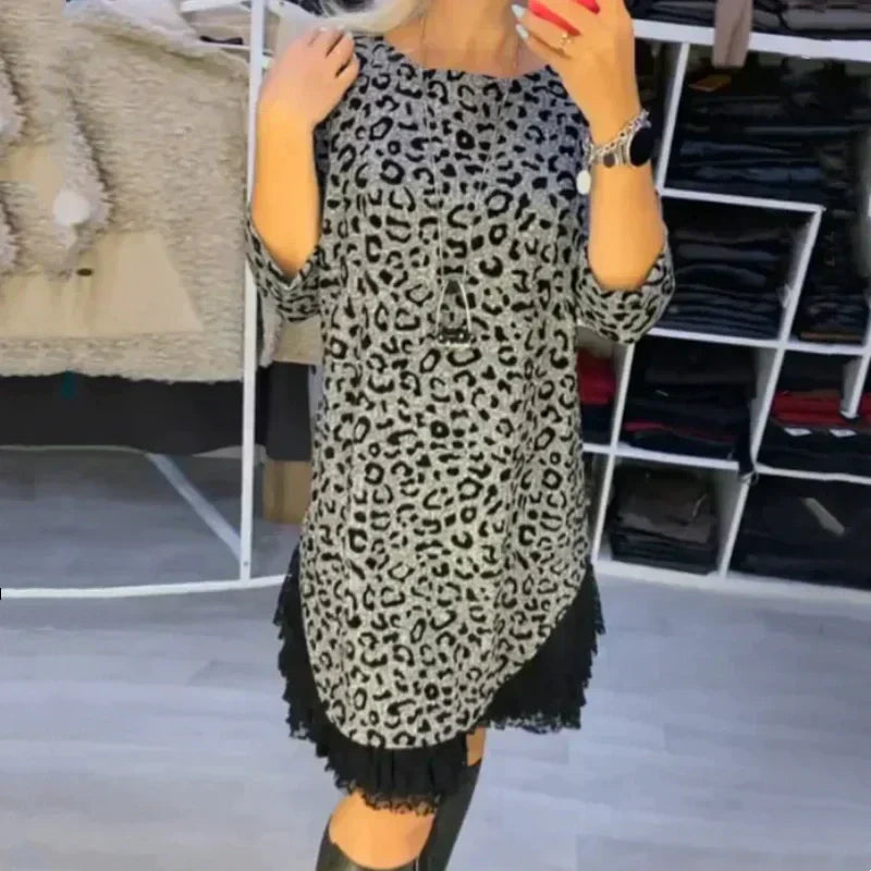 🎅Sales - 49% OFF🎄Women’s Lace Trim Leopard Print Dress