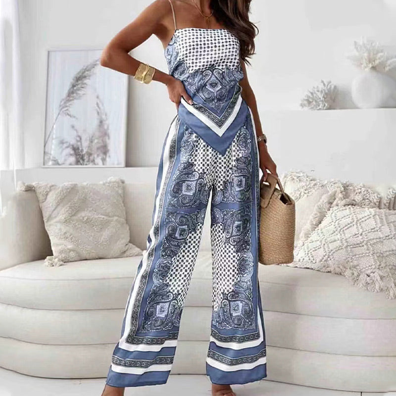 PAISLEY PRINT DESIGN - Trendy bandana-inspired paisley print on both the crop top and wide-leg pants, adding a bohemian touch to your look.