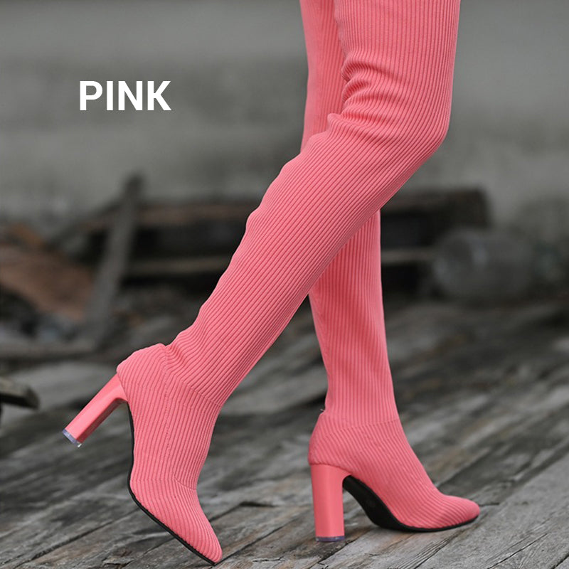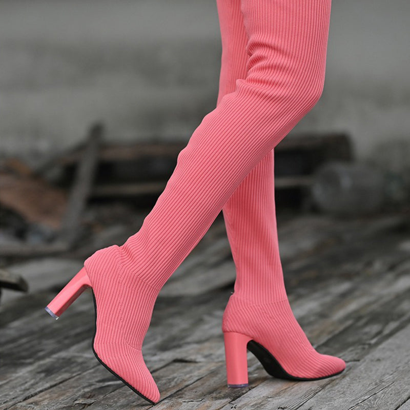 Package Includes: 1 * Women’s Block Heel Pointed Toe Over-the-Knee Boots