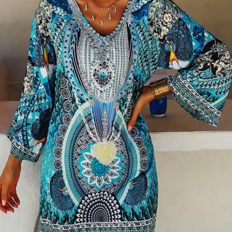 Women’s Bohemian Print V-Neck Long Sleeve Dress