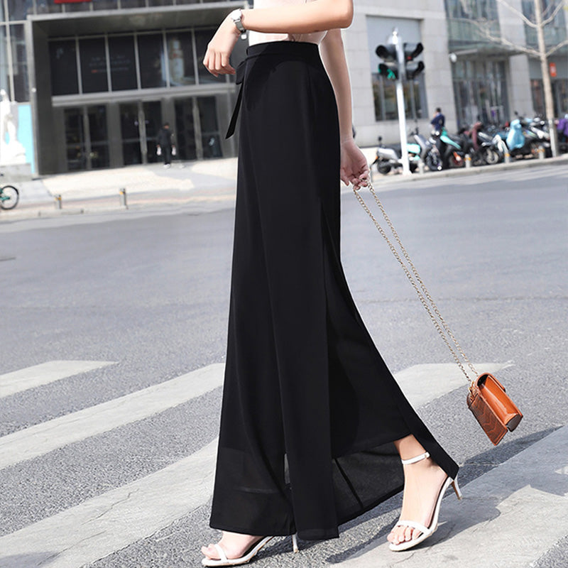 FLOWY CHIFFON FABRIC: Experience the airy comfort of chiffon fabric that drapes beautifully and flows with every step you take. Stay cool and stylish in any season with these breathable wide leg pants.