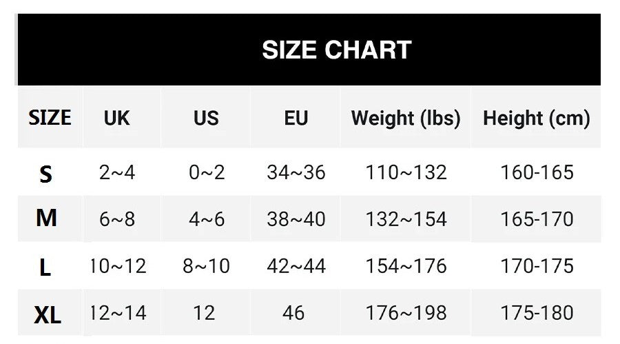 Consult size chart for optimal fit before ordering