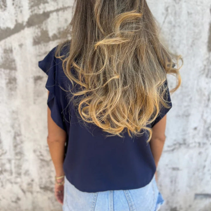 Women's Loose Ruffle Sleeve Short Sleeve Top