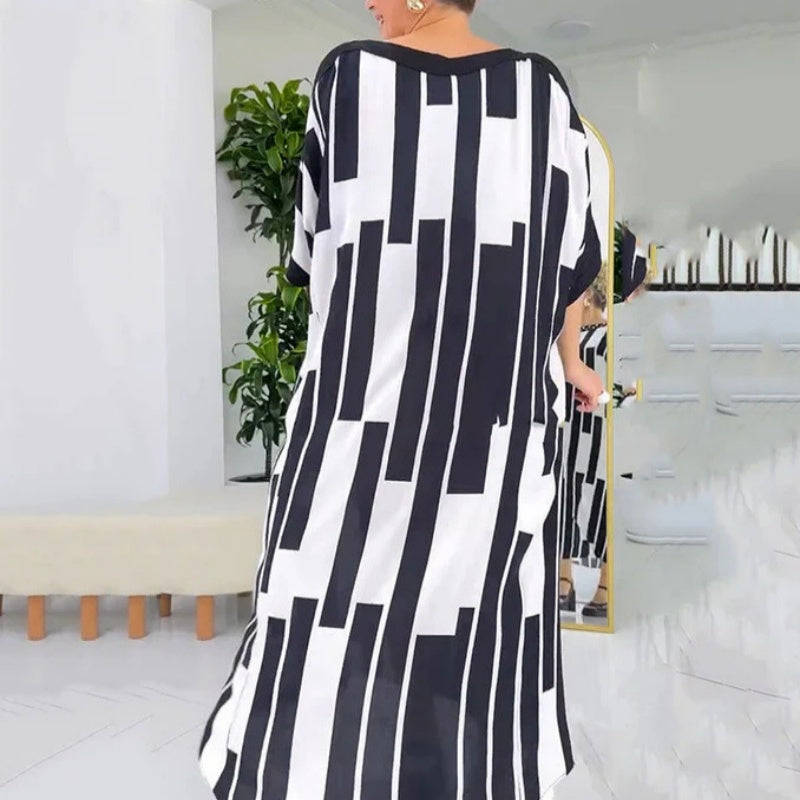 MODERN STYLE – Designed with a chic black and white print, this dress makes a bold fashion statement while maintaining timeless elegance that pairs well with both casual and semi-formal settings.