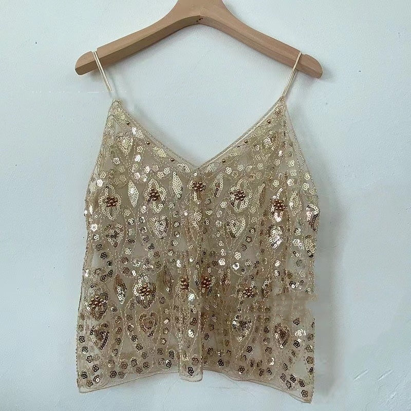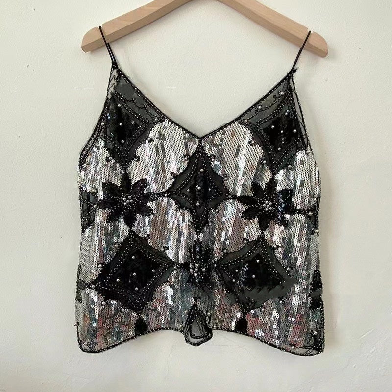 SPARKLING SEQUINED AND BEADED EMBELLISHMENTS: Dazzling sequins and intricate beadwork elevate the cami top, offering a sophisticated touch of glamour for evening parties, special events, or night outs.